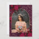 Featuring pretty floral and botanical bouquet with rose gold glitter confetti and a modern glitter arch shape, with an elegant script typography Quinceañera birthday with hand painted princess gown red burgundy purple plum watercolor with glitter. Add your photo at the back. perfect Mis Quince birthday party with a rose gold princess tiara crown.