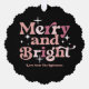 Celebrate the holidays in style with this trendy “Merry and Bright” Christmas ornament card. Featuring bold retro typography and a festive colour palette, this design includes a stylish photo placeholder to showcase your favourite family moment. Perfect for sending warm greetings that double as a keepsake ornament, this card is both thoughtful and on-trend. Ideal for family, friends, or loved ones who enjoy holiday cheer with a modern twist.