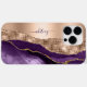 Glitter Girly Rose Gold Stylish Purple Case-Mate iPhone 14 Pro Max Case. Personalise with your name, monogram, initial or text. You can change text colour and font style using the customise it further option. Please note the glitter effect is not real, but just simulated.