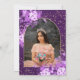 Featuring pretty floral and botanical bouquet with rose gold glitter confetti and a modern glitter arch shape, with an elegant script typography Quinceañera birthday with hand painted princess gown purple lavender watercolor with glitter. Add your photo at the back. perfect Mis Quince birthday party with a rose gold princess tiara crown.