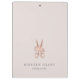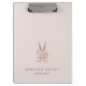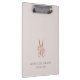 Chic personalized clipboard for your salon or hairstyling business features two lines of custom text in classic gray lettering, on a pale blush pink background adorned with a pair of flower-embellished scissors in faux rose gold foil. Design repeats on reverse side.