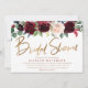 celebrate the bride-to-be with this metallic rose gold bridal shower script with watercolor burgundy navy floral detail. You can personalise this design with your choice of wording, text, paper size and type etc..