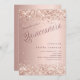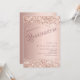 A modern minimalist Quinceañera invitation. Rose gold gradient background and the word Quinceanera written with large letters. Decorated with faux glitter, confetti. Personalise and add a name and party details.
