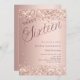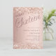 A modern Sweet 16 invitation. Rose gold gradient background and the word Sixteen written with large letters. Decorated with faux glitter, sparkles. Personalise and add a name and party details.