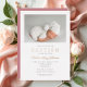 Rose Gold Script Modern Pink Photo Girl Baptism Foil Invitation.