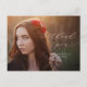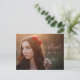 This pretty graduation thank you postcard features a full photo and modern calligraphy. The rose gold and white text overlay includes the phrase "thank you" written in elegant rose gold script, with the graduate's name and graduation year below in white. The rose gold and white typography design overlays a full horizontal photo of the new grad. On the back, you can write a custom message to recipients, or delete the template text to create a blank area for a handwritten note.