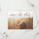 This elegant save the date features shimmering script in faux rose gold foil with a striped backer. Upload your own photo and customise the information to include your wedding details.