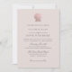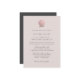 A simple rose gold faux foil scallop seashell and classic grey font against a chic powder pink background adorns this plain and elegant wedding invitation.