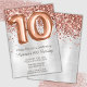 Rose Gold Silver 10th Birthday Party Invitation and rose gold elegant modern 10th birthday party invitation for a 10 year old girl with modern script writing and fun foil balloons.