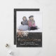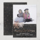 Chic flat style holiday greeting card, with your custom photo, on the top half of the card and pretty rose gold polka dots decorating the bottom charcoal grey half. Graphics of two pretty rose gold looking snowflakes and rose gold graphic text reading Merry Christmas, decorate the front of the card. Personalise the white text, on the bottom front, to suit your holiday card giving needs. Customise to add additional text, on the back side. Sample photograph courtesy of Lorri Lang.