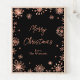 This elegant and glamourous Merry Christmas sign features watercolor rose gold faux glitter snowflakes and sparkles on a white background. The text combines handwritten script and modern sans serif fonts for a classy and sophisticated look. This is perfect for a Christmas party.
