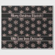 Elegant Rose Gold Christmas Snowflakes Pattern with custom text Merry Christmas Elizabeth With Love from Christopher on Black Background, you can change or delete all text, Christmas Gift Wrapping Paper, choose matte or glossy