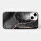 This pretty phone case features a dramatic abstract design in black and rose gold faux glitter. Tiny star confetti gives a glittery effect, with your monogram in pale grey against darker grey and black at the bottom. Classy!
