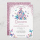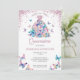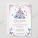 Rose Gold Sparkling Butterflies Gown Blush Floral Quinceanera Invitation