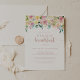 This rose gold spring floral wedding breakfast invitation is perfect for a rustic event. The design features a wealth of colourful peonies and green foliage, neatly bunched into charming bouquets, inspiring natural beauty.