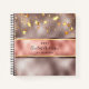 A dark rose gold and faux gold background with a rose gold and faux gold band. Decorated with faux gold dripping stars. Personalise and add a year, your name and text/title on front. Black letters. The name is written with a modern and trendy hand lettered style script.