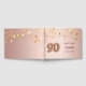 A guestbook for a girly and glamourous 90th birthday party. A faux rose gold background with faux gold dripping stars. Personalise and add a name and date. The name is written in dark rose gold with a modern hand lettered style script. Number 90 is written with a balloon style font.