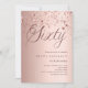 A modern, stylish invitation for a 60th birthday party. Rose gold gradient background and the word Fifty written with elegant large script letters in dark rose gold. Rose gold coloured stars. Personalise and add a name and party details.
