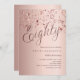 A modern, stylish invitation for a 80th birthday party. Rose gold gradient background and the word Eighty written with elegant large script letters in dark rose gold. Rose gold stars. Personalise and add a name and party details.