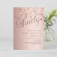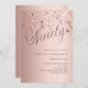 A modern, stylish invitation for a 90th birthday party. Rose gold gradient background and the word Ninety written with elegant large script letters in dark rose gold. Decorated with rose gold stars. Personalise and add a name and party details.