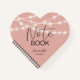 Customise this pretty and elegant sketch book with your personal details. Rose gold coloured heart with string lights.