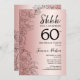 Rose Gold Surprise 60th Birthday Party Invitation. Glam feminine design featuring botanical accents and typography script font. Simple floral invite card perfect for a stylish female surprise bday celebration. Can be customised to any age. Printed Zazzle invitations or instant download digital printable template.