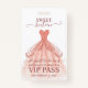 A clever way to invite your guests to your sweet 16 birthday party. These custom rose gold sweet 16 VIP pass badge invitations are sure to impress your guests. Design features a faux rose gold party dress with a modern hand written script font. Easily personalise the back of this template for your sweet sixteen birthday party. Designs are flat printed illustrations/graphics. No actual glitter or lace is used. Designed for you by Blackberry Boulevard.