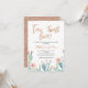 Faux rose gold modern calligraphy taco 'bout love couples shower invitation featuring a lovely pink flowering cactus arrangement, some pink watercolor grunge texture.