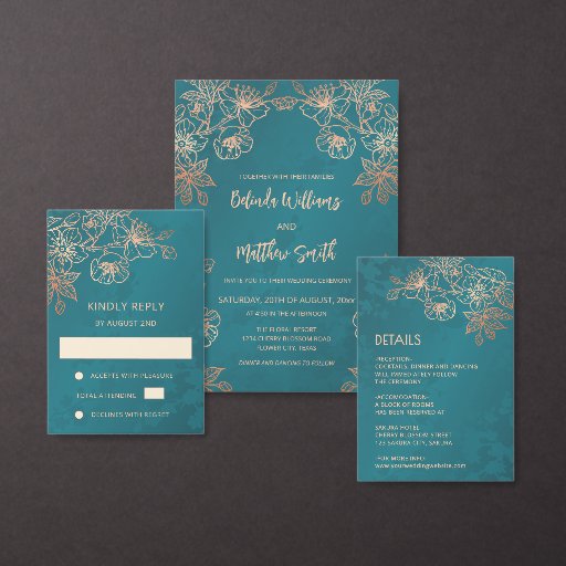 Rose Gold Teal Floral Wedding