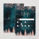 Time to celebrate your winter wonderland wedding theme with this luxury rose gold glitter snowflakes sparkles and rose gold glitter pine tree forest on an elegant festive dark teal green watercolor background, featuring a modern cool script font typography. Perfect rsvp card for your winter wonderland wedding.