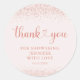 Say thank you in chic rose gold style! This elegant round sticker features modern script with a sweet heart detail and subtle confetti sparkle accents. Perfect for sealing baby shower favors, treat bags, gift boxes, envelopes, and thank-you goodies with a soft blush glow.
