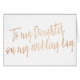 A modern, chic and pretty calligraphy style "To my daughter on my wedding day" card, perfect to give her on your wedding day.
