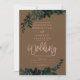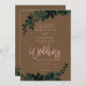 Rose gold typography Floral brown wedding invitation with hand painted green watercolor foliage. The brown colour background is fully customisable