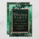 A modern, chic and elegant rose gold typography Floral green Christmas party invitation with hand painted green watercolor leaf foliage on a green ombre gradient watercolor with white snow and snowflakes..