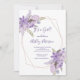 Rose gold geometric frame typography it's a girl baby shower with hand painted purple lavender flowers and floral watercolor bouquet on customisable white background.