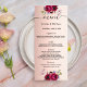 Rose gold wedding menu burgundy florals elegant