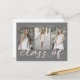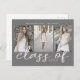 Three photo collage with custom whimsical script "class of" in rose faux foil with year in same colour. All information is in sans serif elegant font on the top of the card. Back side is ombre pink polka dot glitter pattern. Make beautiful custom announcements with easy customisation.