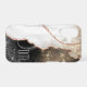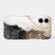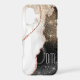 This pretty phone case features a faux white marble with rose gold glitter embellishment on the left side, and your monogram in silver against a black background on the right. Your name is written in pale grey script over the monogram. Over all is an overlay of tiny gold star and silver star shine faux glitter. Unique and elegant!