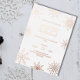 A winter wonderland birthday invitation for a year old birthday with Rose gold pink foil colour with snowflakes and personalised first birthday invitation details. You can edit the fields according to your event. Also change the foil colour from rose gold to silver and gold. Perfect for 1st birthday invitation.