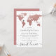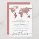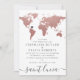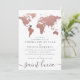 Chic rose gold world map with a moveable heart so you can create an elegant blush pink and grey travel theme invitation for a local reception or destination wedding.