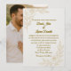 Flip the invitation to discover a deeply personal touch: the back hosts a full-bleed photograph, transforming the suite into a keepsake. Whether it’s a cherished engagement portrait, a candid moment by the sea, or a quiet capture beneath lilac blooms, the photo transforms the invitation into a window into your story. The interplay between the textured stone front and the photo’s intimacy whispers of permanence and presence—of love carved with intention.
