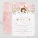A simple and delicate invitation for your daughter's First Communion, Baptism, or Christening with pink flowers and a gold cross. Details are easy to change to fit your event.