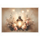 A softly glowing lantern becomes the heart of a romantic cottagecore scene, surrounded by blush roses, airy wildflowers, and floating heart lights that feel dreamy and hopeful. Warm amber tones blend into a misty backdrop, giving the artwork a gentle vintage glow. The composition feels serene, sentimental, and lovingly handcrafted, perfect for anyone drawn to whimsical florals and quiet, luminous beauty. AI generated artwork.