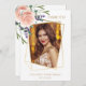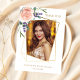 A modern and elegant bridal shower photo thank you card. A chic white background. Decorated with a rose gold and blush pink roses, florals flowers and lavender. On the front the text: Thank You, name, and a date.