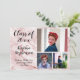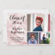 Elegant classy white and rose gold marble pattern, trendy and popular background theme makes a statement about strength and stability. Be at the head of the class with this elegant three photo graduation announcement with initial monogram on front and back and handwritten look text.