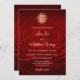 This modern Chinese wedding invitation features a gold double happiness symbol on a floral ruby red rose flower background. Bride and groom names in an elegant handwritten script. Chinese wedding invitation or tea ceremony invitation.
