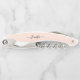 Create your own custom, personalised, classy modern elegant black calligraphy typography script font monogrammed on light rose gold background, chic stylish cool contoured ergonomic handle bottle opener featuring a stainless steel foil cutter blade, a beer bottle cap opener, and a steel spiral corkscrew wine bottle opener. Simply type in your name / family name, to customise. Makes a great gift for birthday, christmas, holidays, wedding, mothers day, first home / housewarming gift, grandparents day, family reunions, friendship day, special tastings, milestone birthdays, and more, for your loved ones, mum, dad, girlfriend, boyfriend, husband, wife, couples, newlyweds, corporate clients, employees, boss, new parents, beer lovers, wine connoisseurs, men, women, him, her, friends and family.