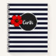 Black and white striped spiral notebook with and rose monogram design in the centre. You can personalise this notebook by adding your name or initial using the customised template.