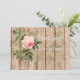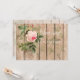 A pretty rose of Orleans in a rose decorated mason jar against a detailed grey wood panel.