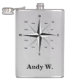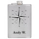 Rose of the Winds Compass and Brushed Aluminium Hip Flask